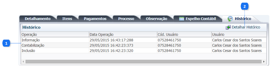 Histórico do arquivo