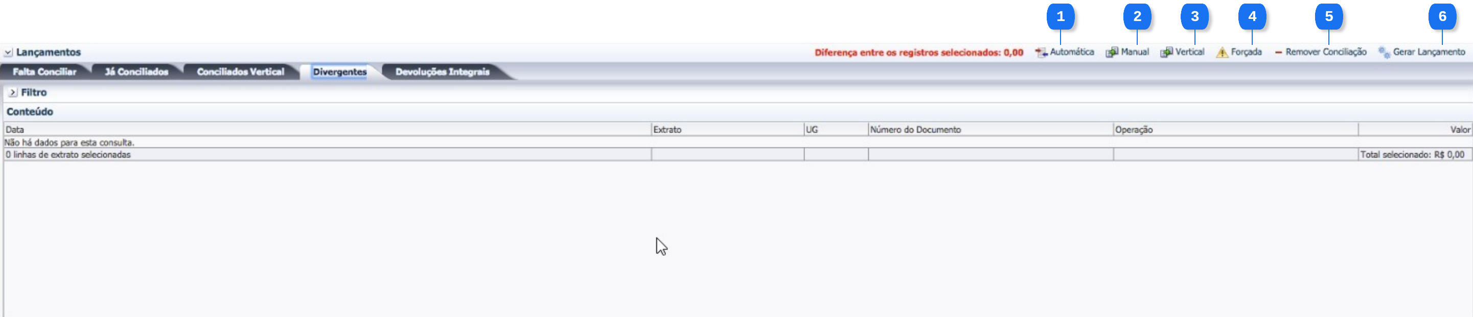 Arquivo:Execução - Execução Financeira - conciliacaoBancaria - Aba Divergente.png